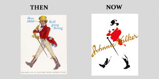 Sometimes, the idea of the character survives, while the actual physical form becomes more symbolic, as has happened with Johnnie Walker's Walking Man (who I used to confuse with Force Flakes' Sunny Jim as a child. Luckily I didn't confuse the products!)